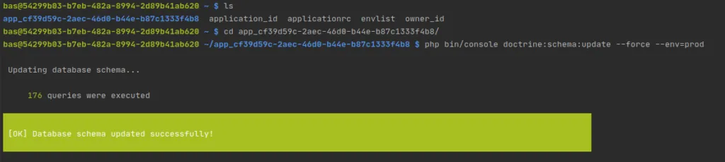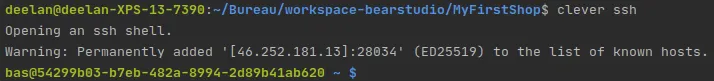 Après cette première étape, il faut initialiser la base de données. Depuis le terminal, lancez la commande clever ssh, ce qui vous permet d’accéder à la VM sur laquelle est déployée l’app :